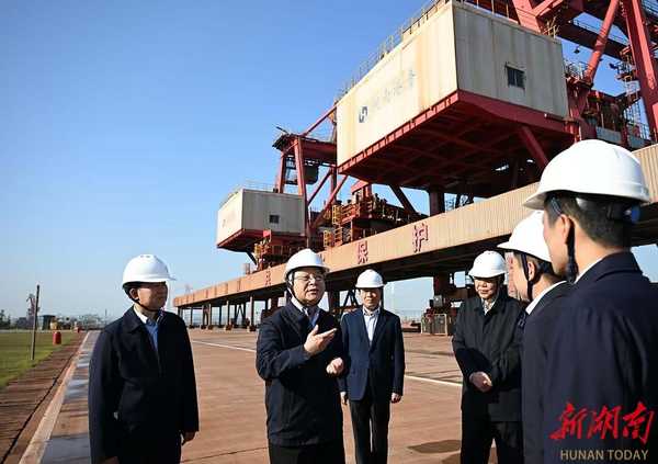 调研中,沈晓明详细听取长江经济带综合立体交通网、湖南省交通网“十五五”规划布局等情况汇报,并来到岳阳城陵矶港、城陵矶新港多式联运物流园、浩吉铁路坪田站实地了解长江水运口岸建设、新港老港协同发展、铁水联运等情况。他指出,要着眼长远,优化临港产业布局,大力发展多式联运,降低企业物流成本,提高运输效率效益。在岳阳三荷机场,沈晓明深入了解机场运营情况,指出要立足实际明确机场定位,大力发展航空物流,努力把机场打造成航空货运枢纽。